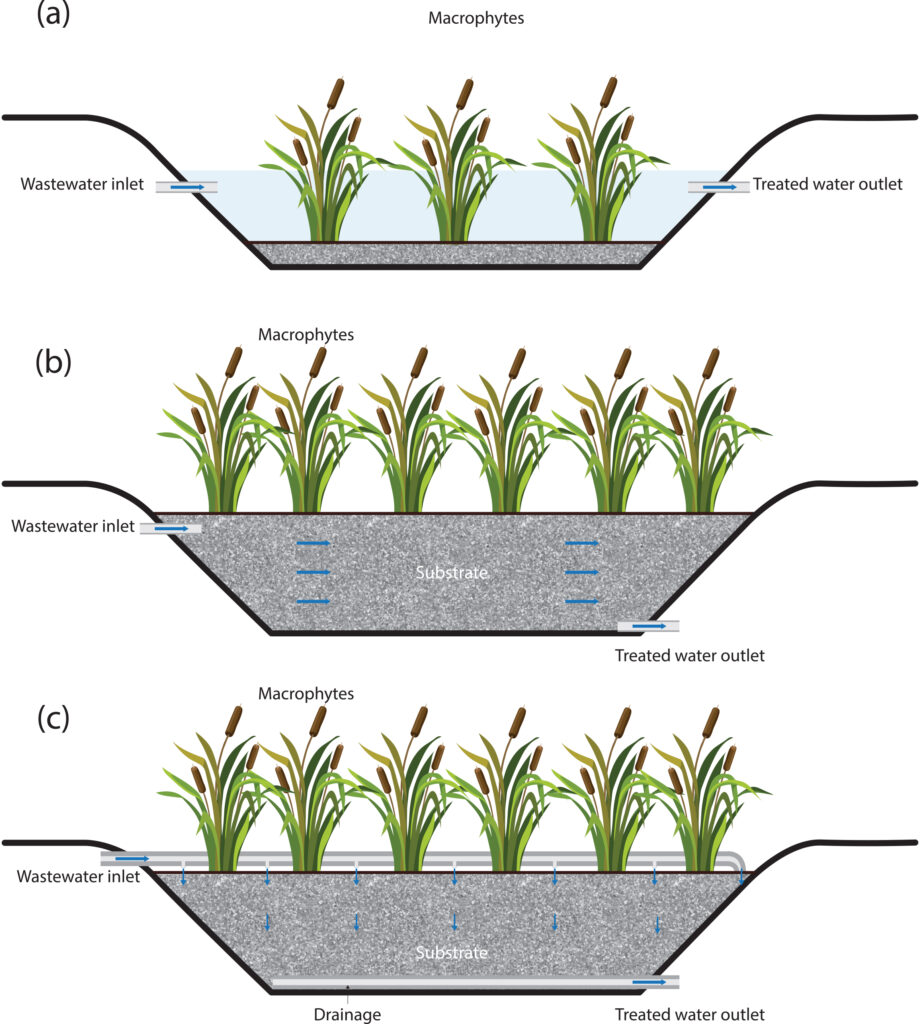 Μέχρι σήμερα, έχουν δοκιμαστεί διάφοροι σχεδιασμοί ΤΥ για την επεξεργασία λυμάτων, όπως είναι τα συστήματα μονού σταδίου (π.χ. κατακόρυφη ροή – VF, οριζόντια ροή – HF, επιφανειακή ροή – SF) και τα υβριδικά συστήματα (πολλών σταδίων). Αν και δεν υπάρχουν τόσα πολλά παραδείγματα διεθνώς, είναι γνωστό ότι τα υβριδικά συστήματα ΤΥ που συνδυάζουν διαφορετικούς τύπους ΤΥ τείνουν να έχουν υψηλότερη απόδοση αφαίρεσης ρύπων. Τα υβριδικά συστήματα ΤΥ μπορούν να θεωρηθούν ως ανάλογα των συστημάτων αναερόβιας-αερόβιας επεξεργασίας, π.χ. το VFCW θα λειτουργούσε ως αερόβιο σύστημα, ενώ το σύστημα HFCW θα λειτουργούσε ως ένα αναερόβιο. Ωστόσο, τα υβριδικά συστήματα, αν και αποτελεσματικά, αυξάνουν περαιτέρω τη απαίτηση σε έκταση. Επιπλέον, τα περισσότερα συστήματα ΤΥ λειτουργούν ως δευτεροβάθμιο στάδιο επεξεργασίας, π.χ., απαιτούν πρωτοβάθμια επεξεργασία για την απομάκρυνση της πλειονότητας των αιωρούμενων στερεών από τα λύματα. Υπάρχει μόνο ένας σχεδιασμός, γνωστός ως γαλλικό σύστημα, που μπορεί να δέχεται ακατέργαστα λύματα χωρίς πρωτογενή καθίζηση, αλλά αυτό απαιτεί επίσης ένα δεύτερο στάδιο ΤΥ για να παρέχει μια αποδεκτή ποιότητα εκροής.